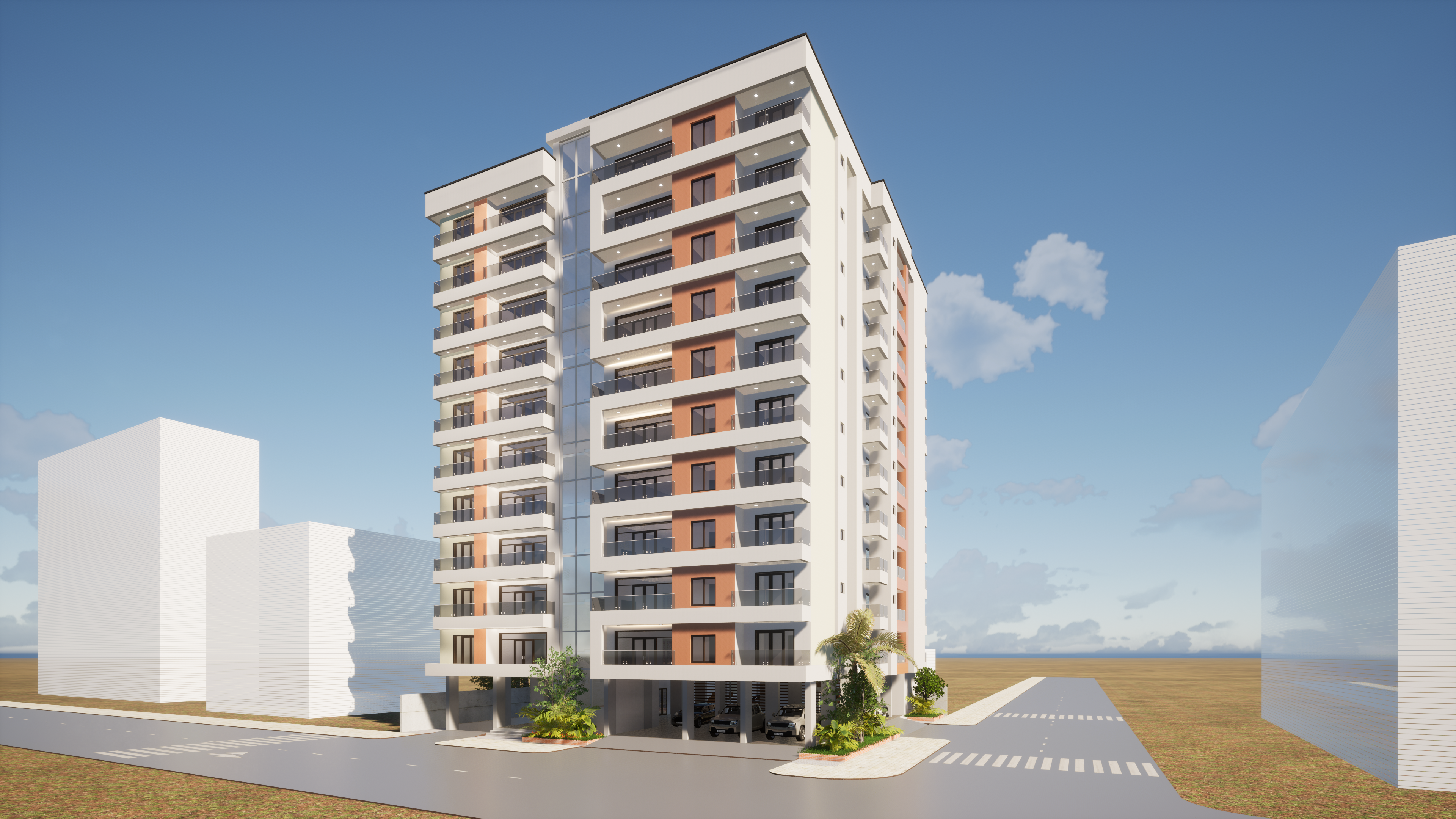 "Études et supervision de la construction d'un immeuble à usage mixte (Bureaux/Appartements) de 11 niveaux (R+10)."